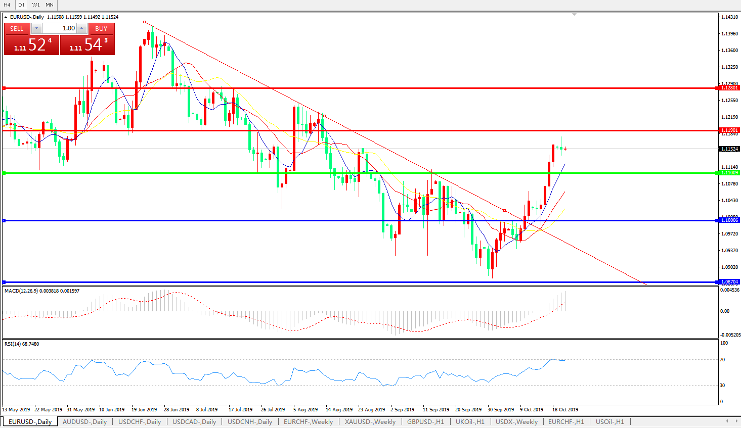 交易策略:1.1100上方看涨,目标1.1190、1.1280