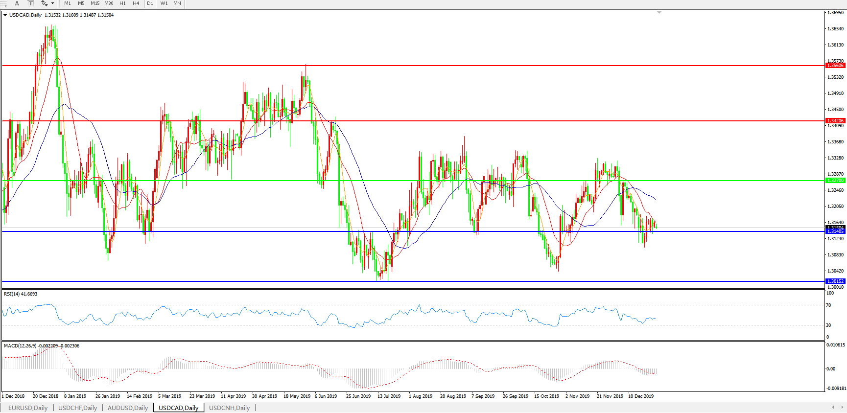 技术面简析:日线图均线呈空头排列,汇价在1.3140关口逐步止跌反弹开始整理,MACD下穿0轴且量能0轴下方微放量,RSI震荡走平,预计汇价短期将小幅反弹整理,中期存进一步下行空间。