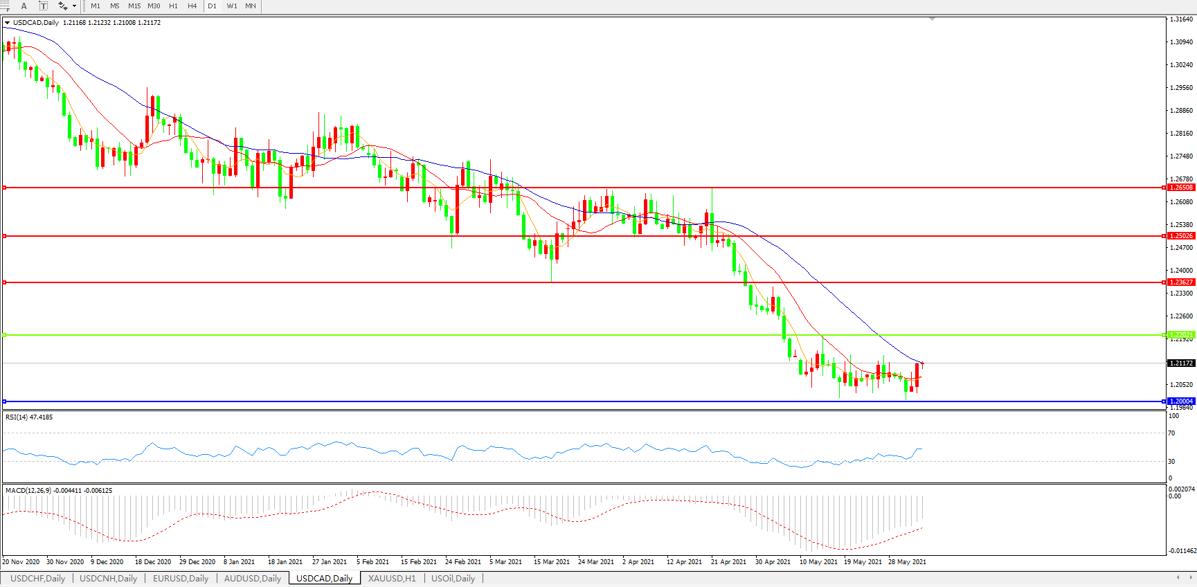 美元兑加元USDCAD    日线图: