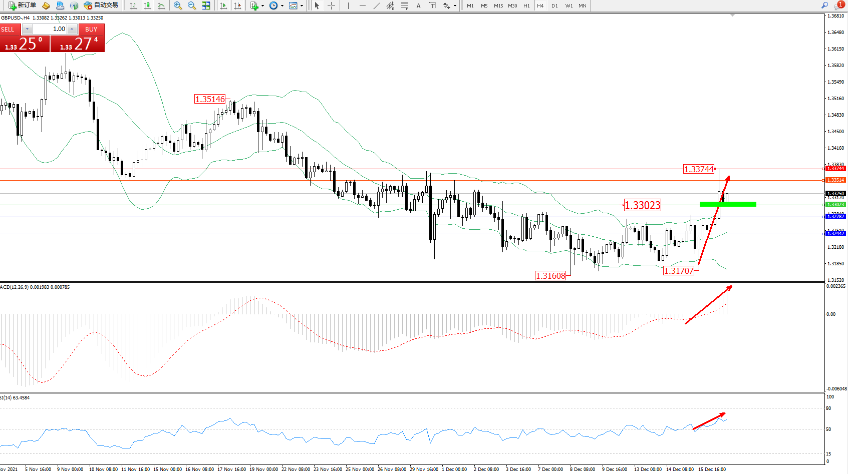 交易策略:1.33023上方看涨,目标1.33514、1.33744