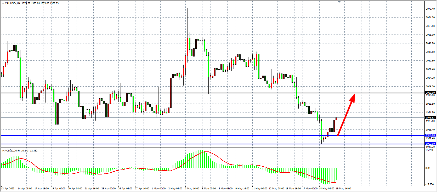 周五(5月19日)美联储主席鲍威尔表示,由于银行业动荡后信贷环境收紧,利率可能不必升得那么高,该消息被解读为是美联储可能在6月暂停加息的信号,市场对6月份加息的预期从近50%降至20%,现货黄金尾盘反弹,收涨1.11%。展望后市,本周将关注FOMC 5月会议纪要、美国GDP最新数据以及PCE通胀指标。