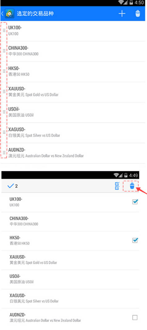 1.点击菜单栏的“交易”图标,将进入到交易页面。页面上方显示账户信息,下方显示未平仓的交易订单。